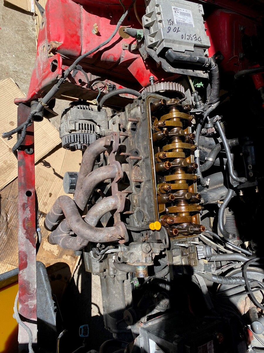 Une fois tout pigé, je vire les gros du collecteur d'admission (durites, papillon, etc) et j'ouvre le cache culbu afin de démonter la culasse (ca va c'est pas trop degueu dedans).