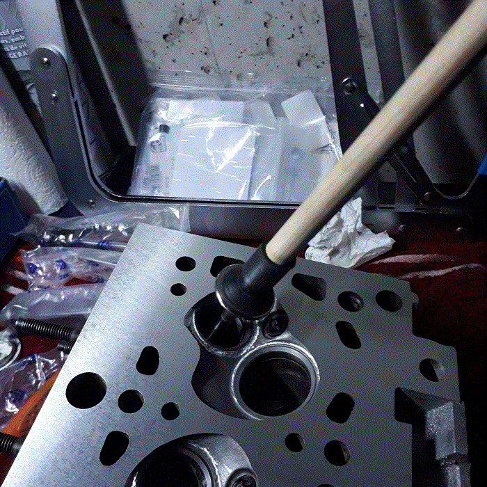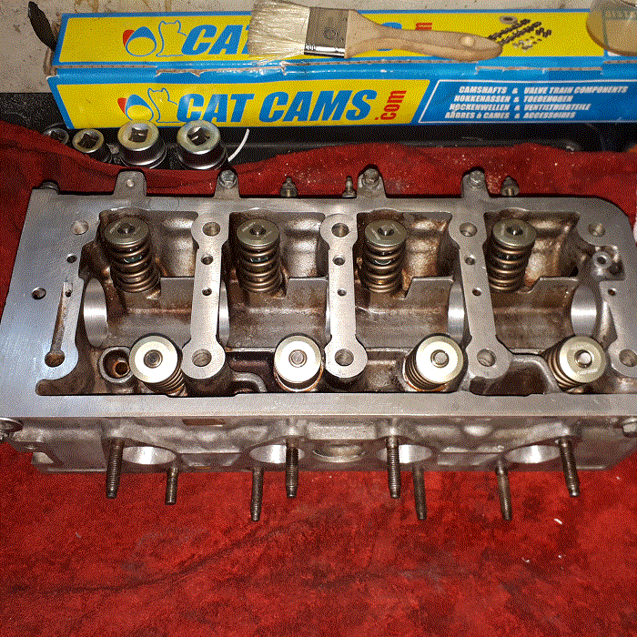 Ce week c'était remontage de la culasse donc avec les soupapes/clavettes neuves qui coulissent nickels dans les guides, pose des nouveaux ressorts/coupelles CATCAMS.
