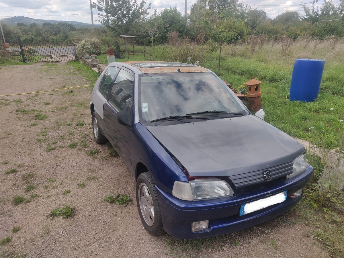 Donc j'ai acheté une 106 rallye phase 2 et la je me suis laché , pcq celle ci est noire onyx de base à repeindre , Elle n a plus de faisceau, plus de moteur et plus de calculateur ! l interieur est moche sans etre pourri et non nettoyable . Voila pour mes petits bijoux pas encore précieux .