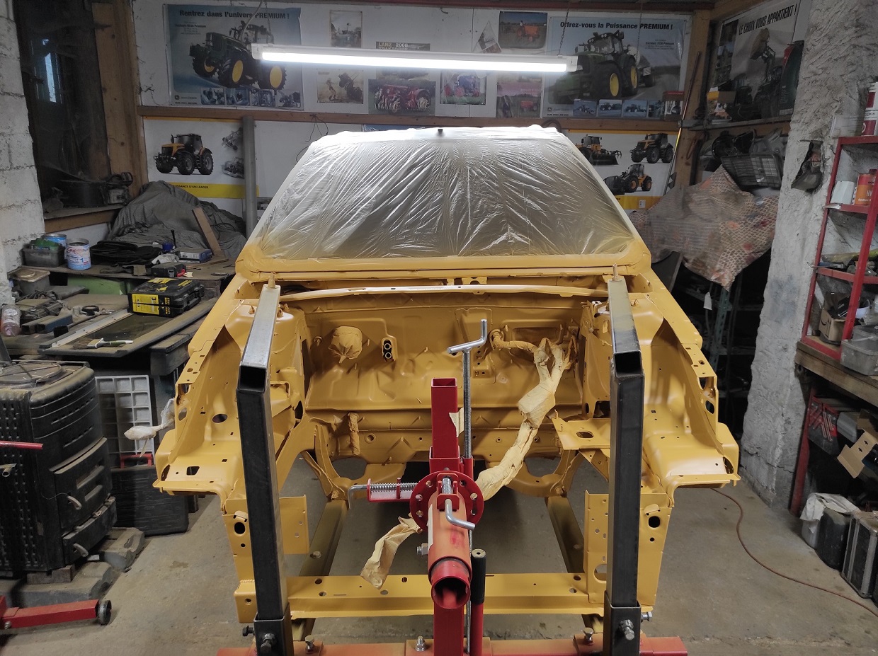 Le gros du travail se concentre depuis des semaines sur la peinture de la caisse ( le dessous, le compartiment moteur et les passages de roues) le but étant de supprimer toute la corrosion et de reprotéger dans les règles de l'art.