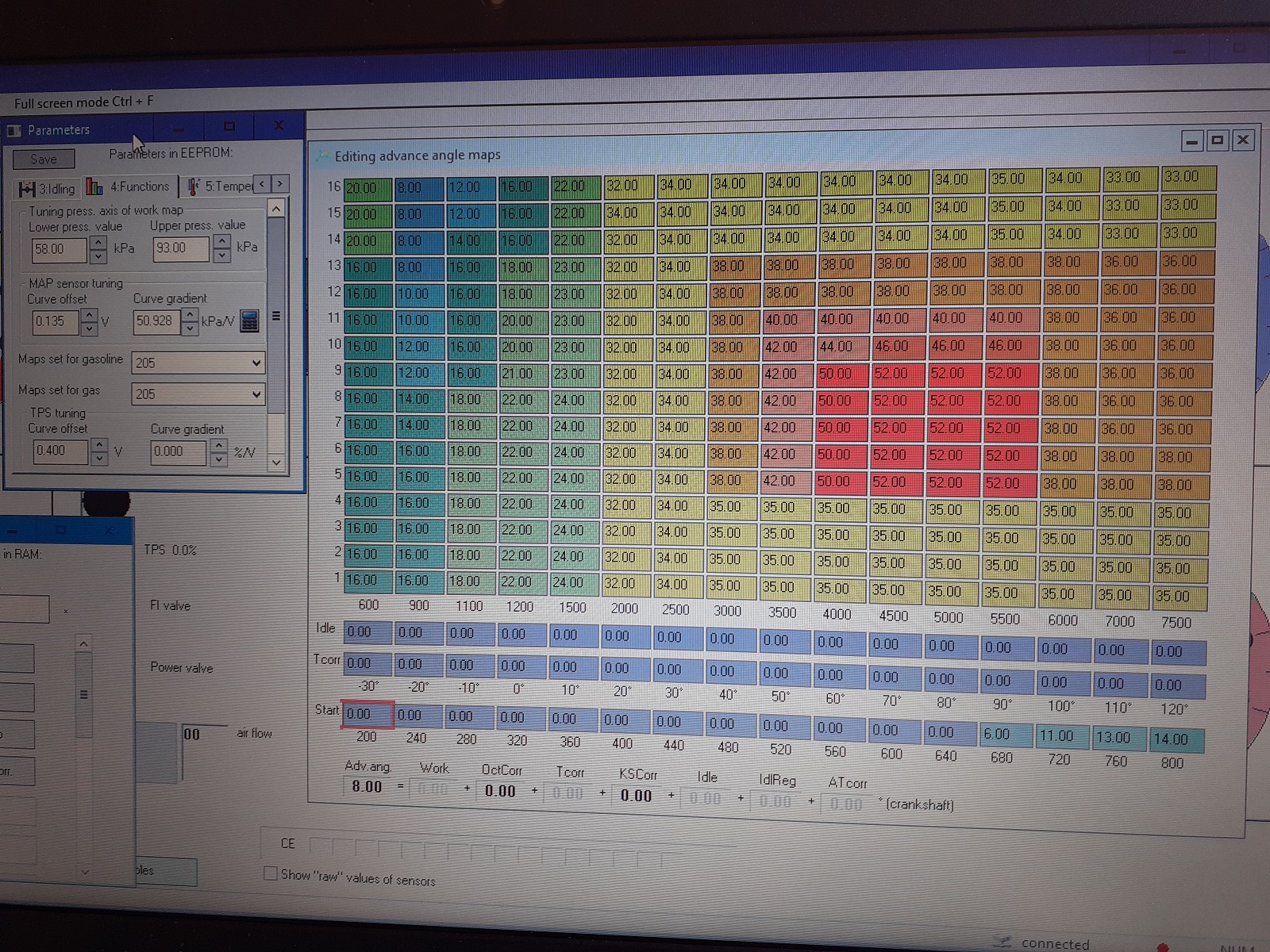 un ralenti vers 1000tr et un peu d'avance a l'allumage, je pensé que comme tu as le même calculateur, je pensé que tu avais des donné déjà prête en stock ou du moins proche de ce qu'il me faut.
