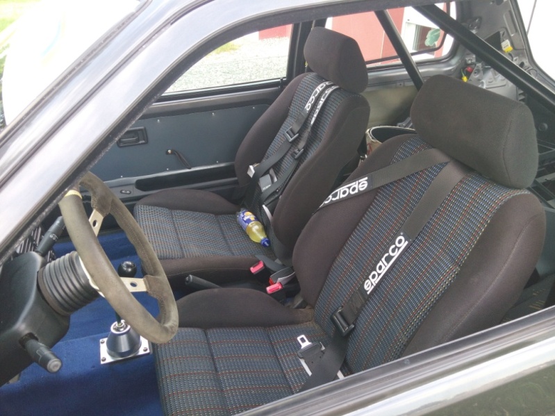 Niveau chassis, j'ai des freins de 207 avec des plaquettes RC6, des amortos apparemment peugeot sport à l'avant et des koni à l'arrière, un demi-arceau OMP, ventilo SPAL avec interrupteur, et un shortshift.
