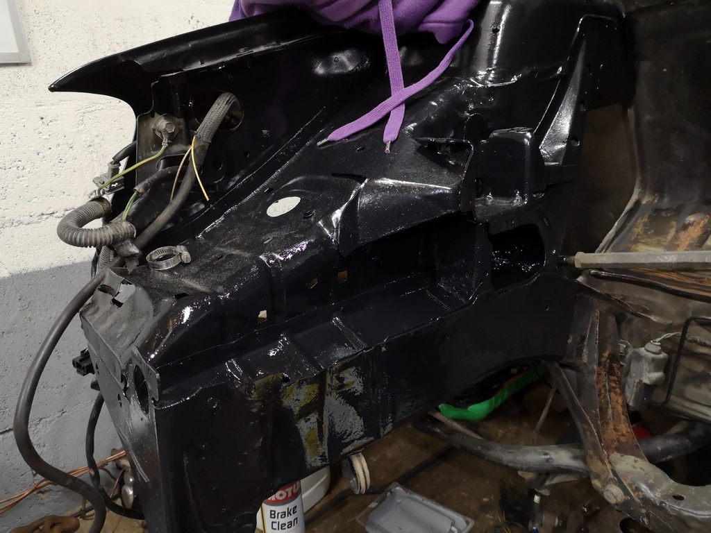 Suite ET, 2e couche de peinture coté droit passager, sur le longeron et sur l'attache de remorquage.