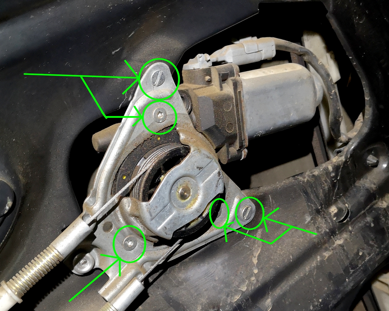 Tout les endroits où se place la visserie de fixation du panneaux de portière gauche conducteur
