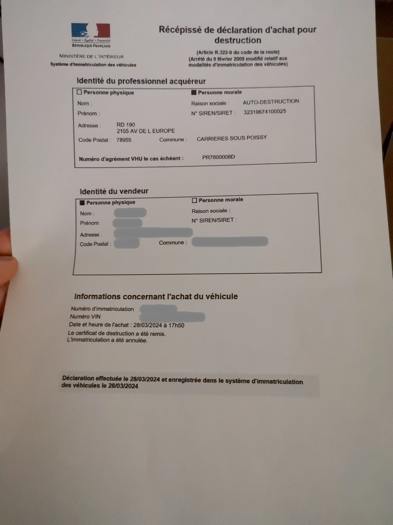 Le châssis doit partir aujourdhui ou demain au centre de destruction, sauf changement de programme.