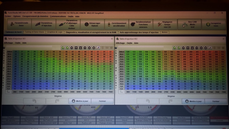 Coté injection, la VE1, est clairement pas utilisé, c'est celle de base de la carte MégaSquirt .