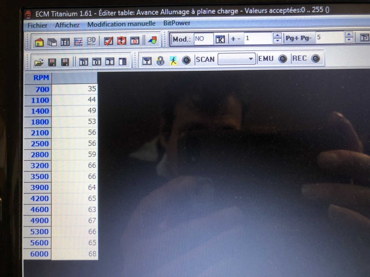 Palier 5600trs / Valeur15 [206] : temps d'ouverture 80.4%