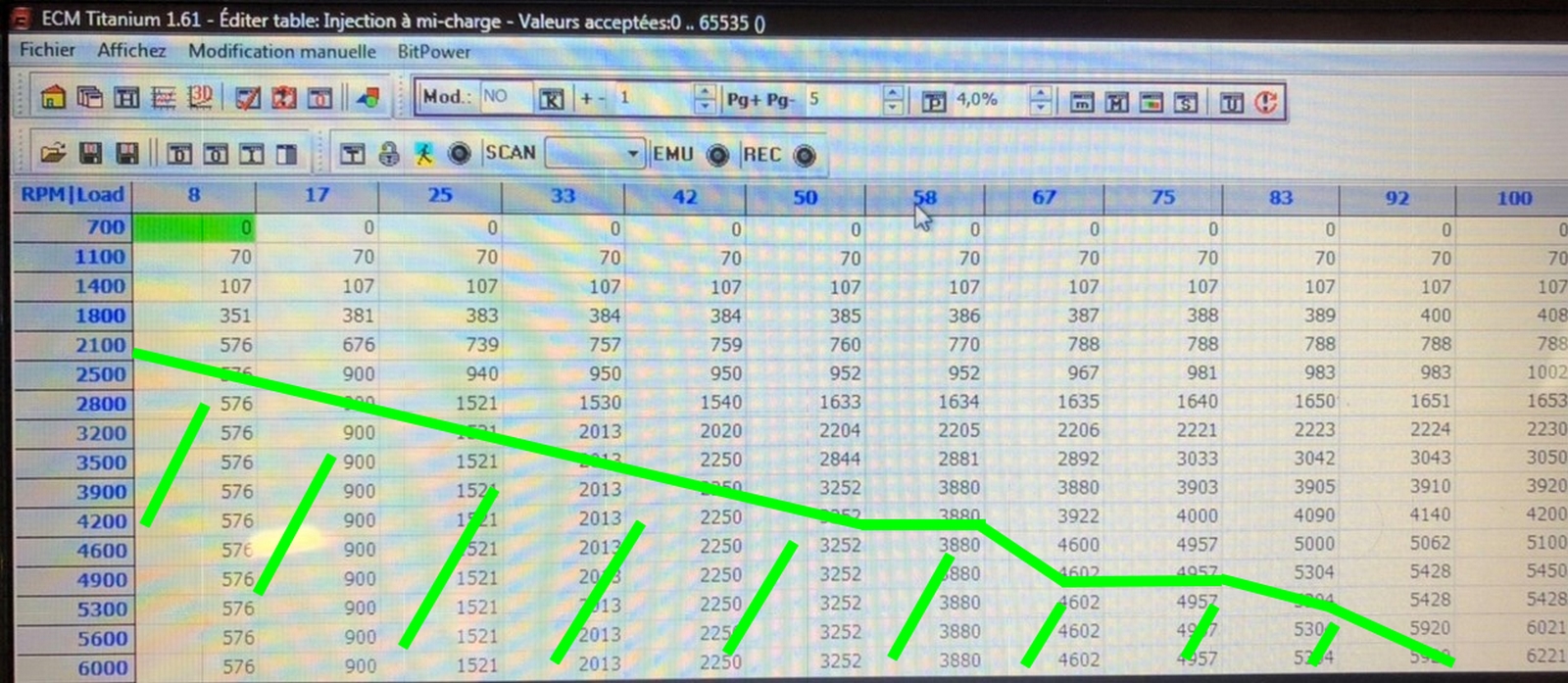Pour moi c'est trop restrictif ce mapage, voir dangereux pour le bloc en refroidissement ou départ de cliquetis