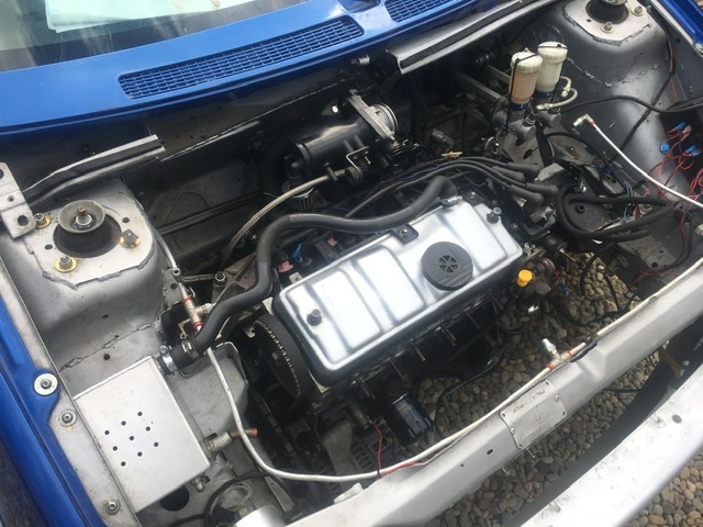 Pour le moment elle est sans moteur/boite, l'objectif est de monter une voiture fiable pour débuter en rallye avec un petit budget. Donc on ne vise pas les victoires de classe ni des temps scratch mais le plaisir