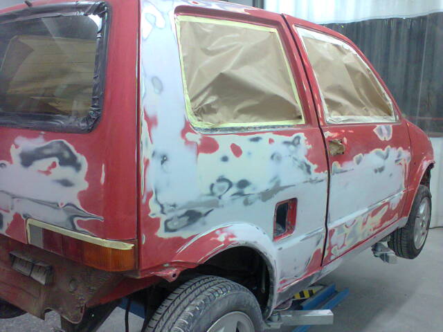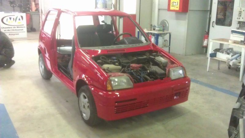 Voici donc quelques info de la puce : une Sporting noire (je maintiens toujours que les jaunes sont ... ) de 1996 avec seulement 97 000 km, jamais repeinte avec une mécanique bichonnée. Elle bénéficie en plus de Barres Anti rapprochement AV/AR, supensions -40, admission modifiée et AAC de Punto 60, juste ce qu'il faut pour en faire un vrai karting !