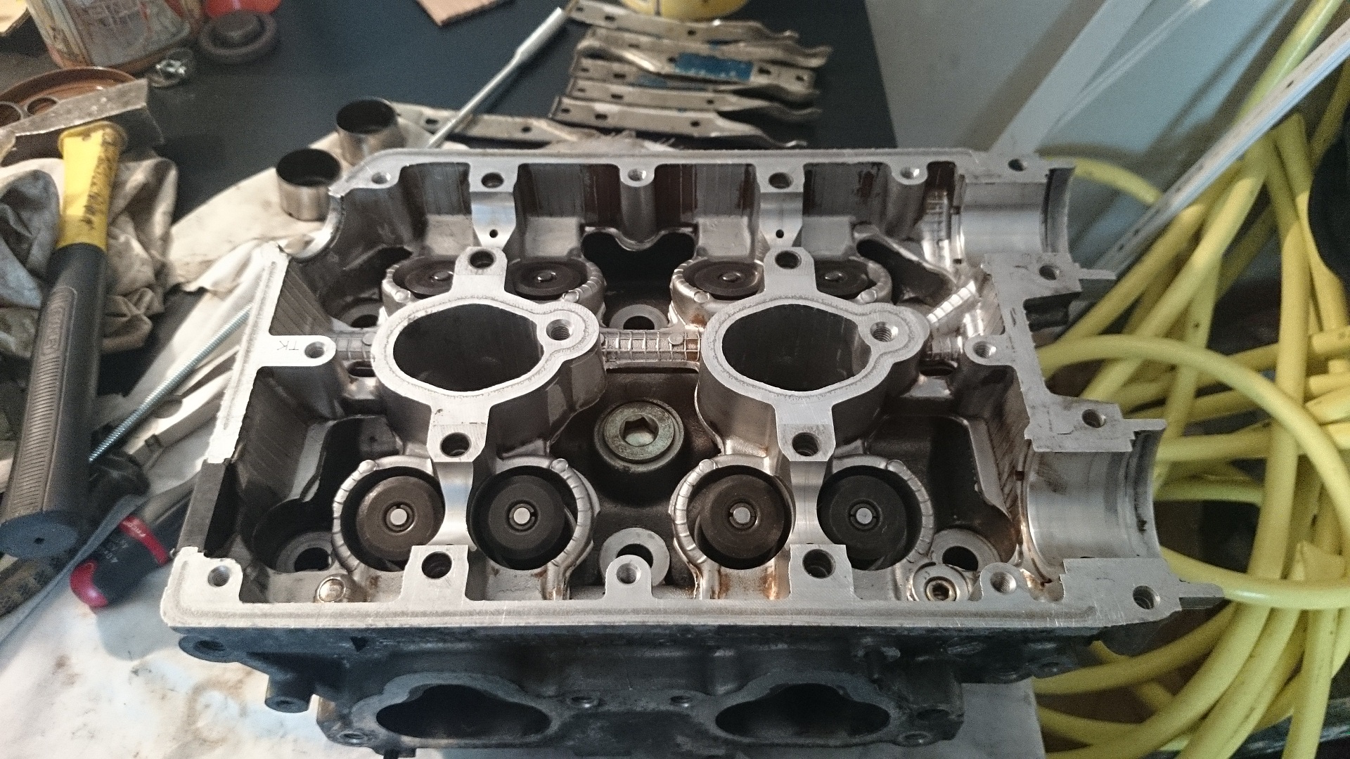Pistons montés, une culasse avec soupapes nettoyées et sièges rodés, joint de queue de soupape neuf et remontage des ressorts de soupape !