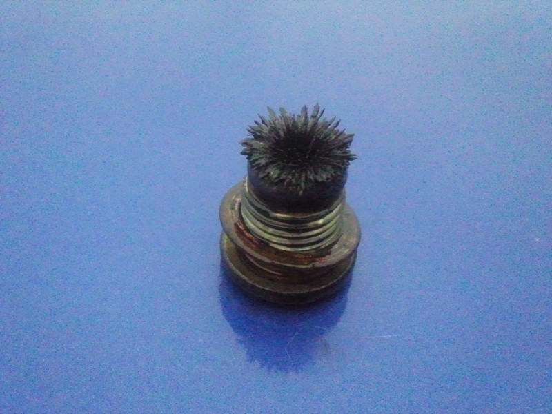 Je rappelle que ma décision de changer l'huile de boite vient du fait que je n'ai aucun rapport sur un changement d'huile par le biais des vieilles factures (le liquide de frein était lui aussi marron et carrément dégueu quand j'ai vidangé mon circuit de freinage pour le changement de train arrière = d'origine ou presque selon moi), des accrochages de 2eme vers 3eme et de 3eme vers 4eme et un bouchon a la vérification du niveau rempli de limaille ...