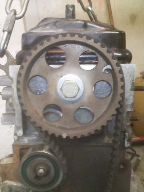 [/img] et piger l'arbre à cames avec un foret de 6mm ( il y a un trou dans la culasse qui doit correspondre avec l'encoche de l'arbre à cames). [img]