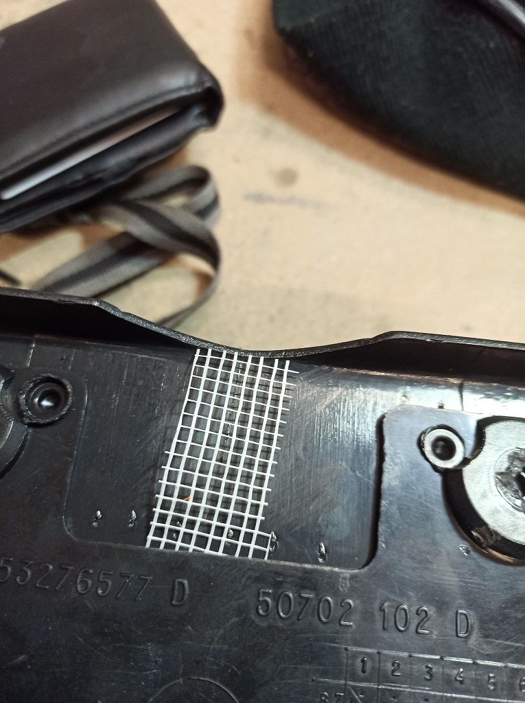 C'est-à-dire perçage au bout des fissures pour les stopper, décapage, pose d'une trame de renfort et colle bi composant 3m (colle fantastique sur les plastiques) par le dessous de la casquette.