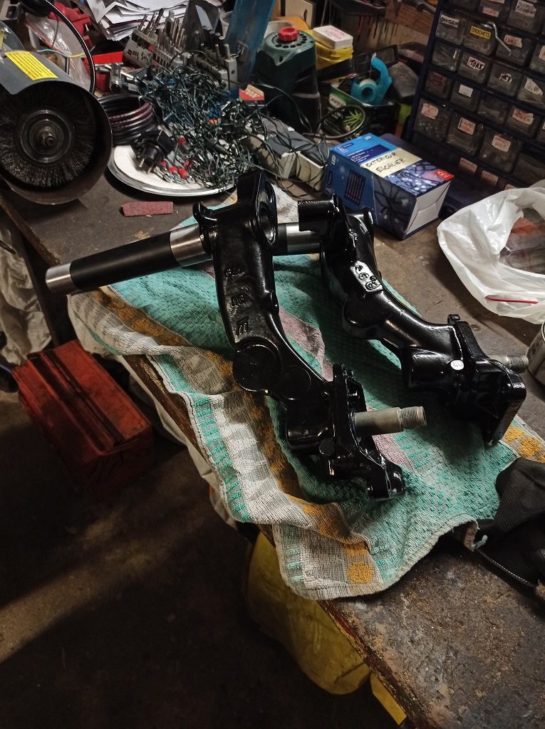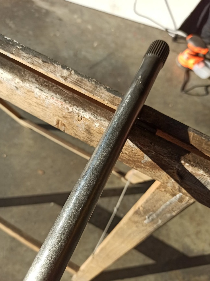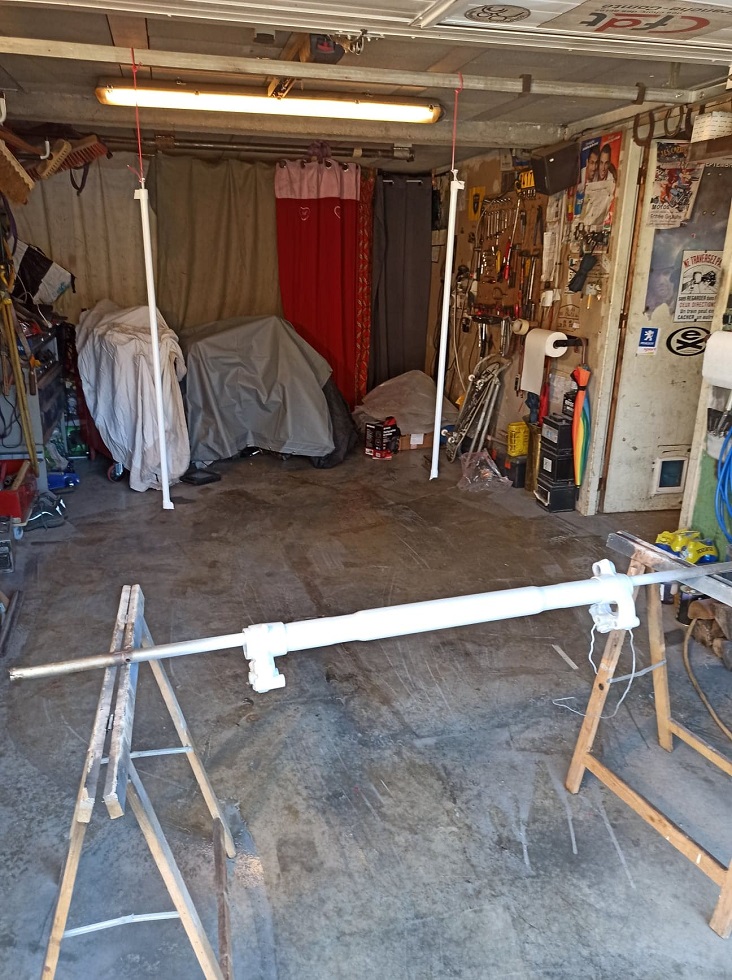 J'ai décapé la poutre et les barres de torsions, et mis en apprêt époxy le tous, pour protéger jusqu'à la prochaine étape.