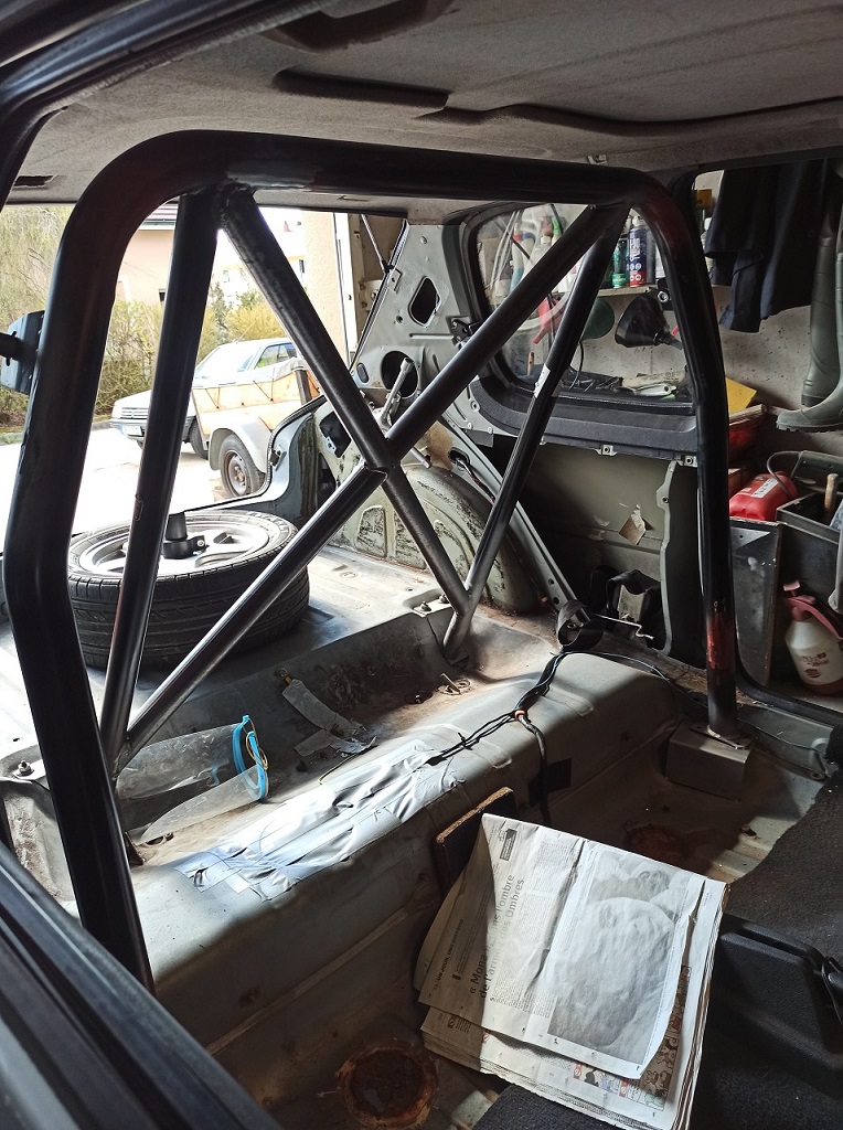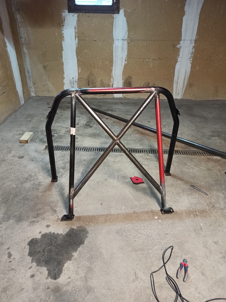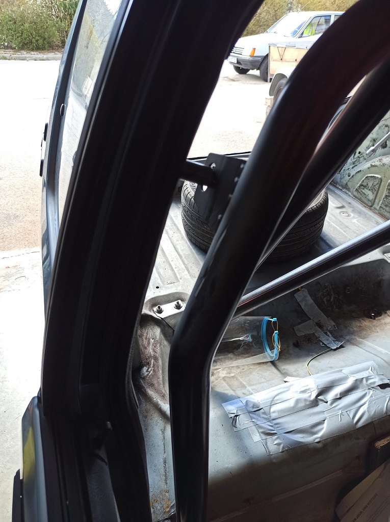 J'ai fignolé un peu l'installation de l'arceau, nettoyé-protégé et déplacé les pattes du dessus pour les ancrages de ceintures. Me reste plus que les 2 barres pour les harnais.