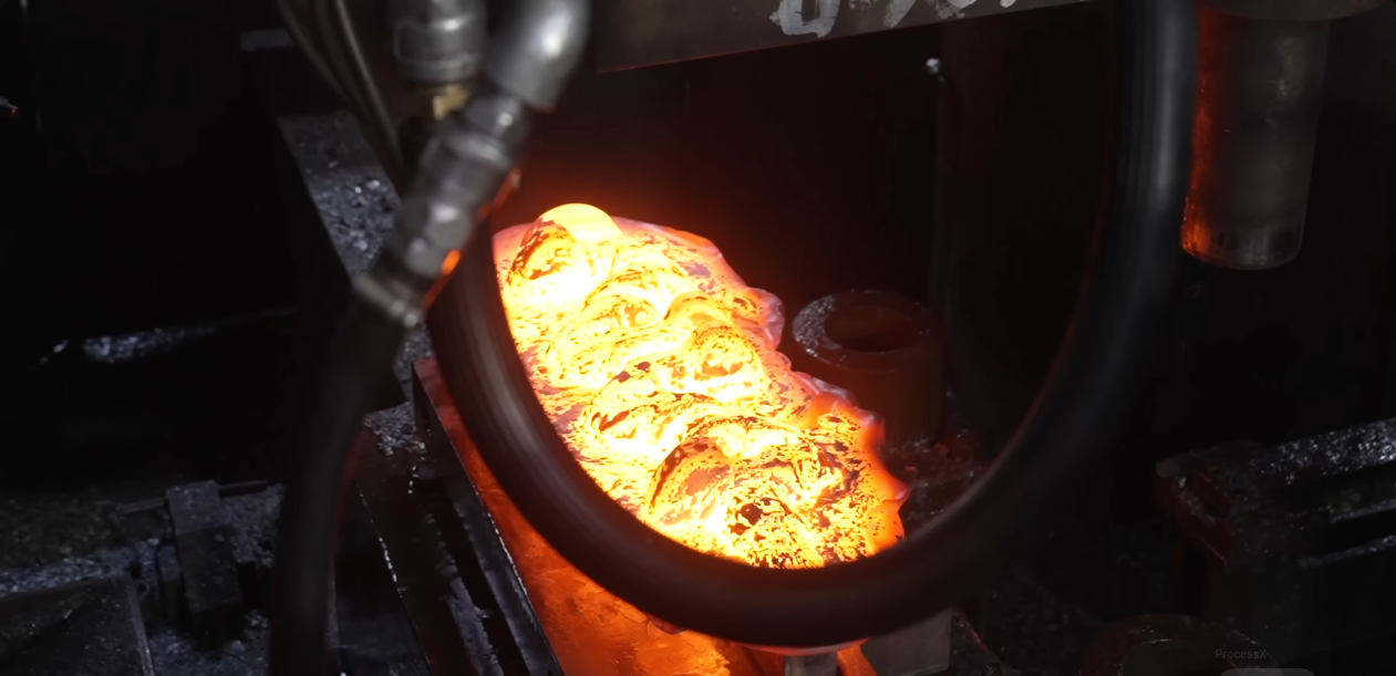 Ici du forgeage en moule (cnc ou autre) sous pressage de 6000T à plusieurs reprise.