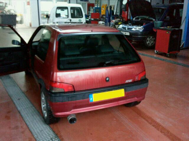 Les jantes 14 sur la photo ont été remplacées par des 15, la ligne qu'un pote m'as prété est une acier decata mais il ya un silencieux d'origine au bout