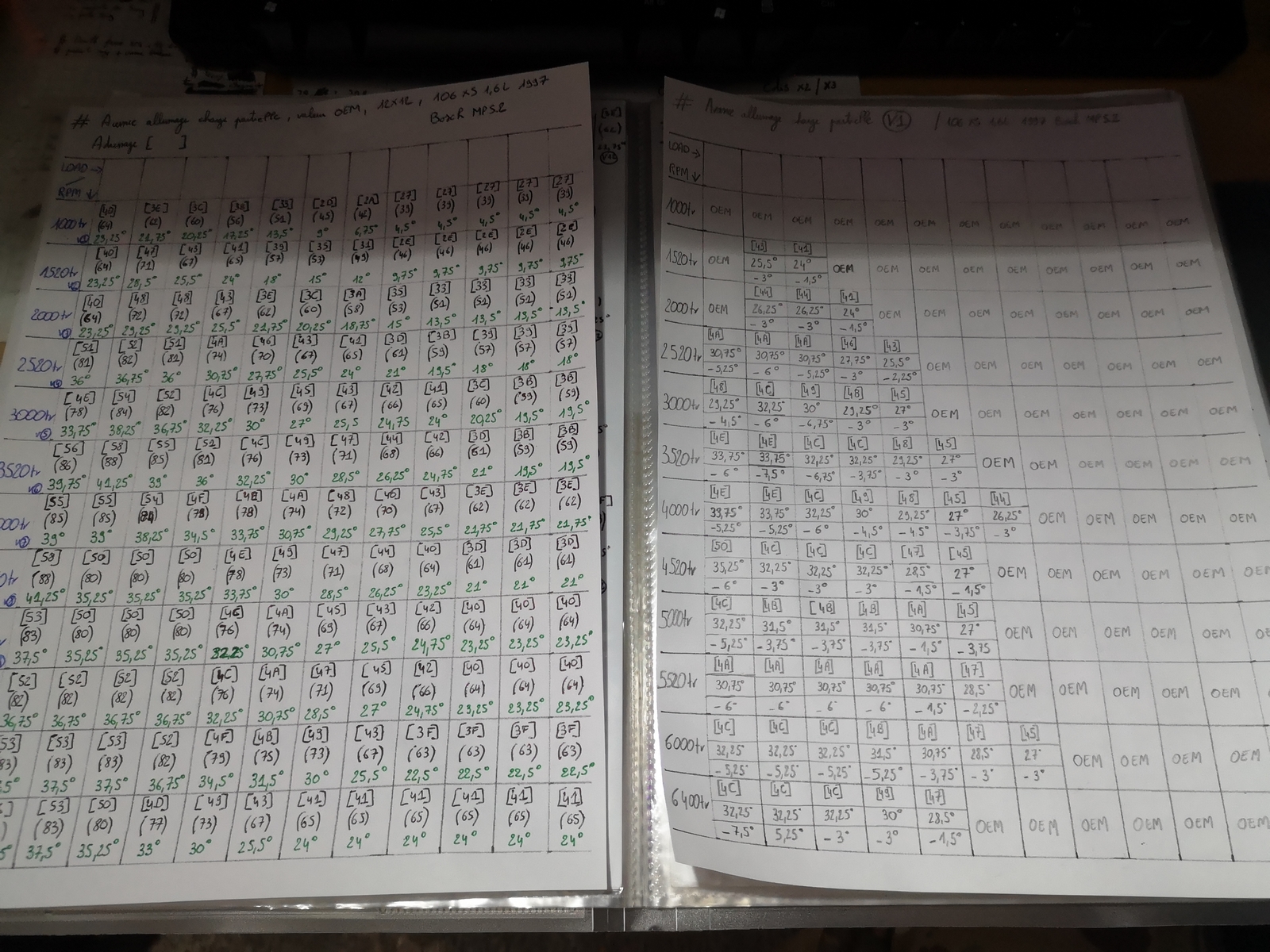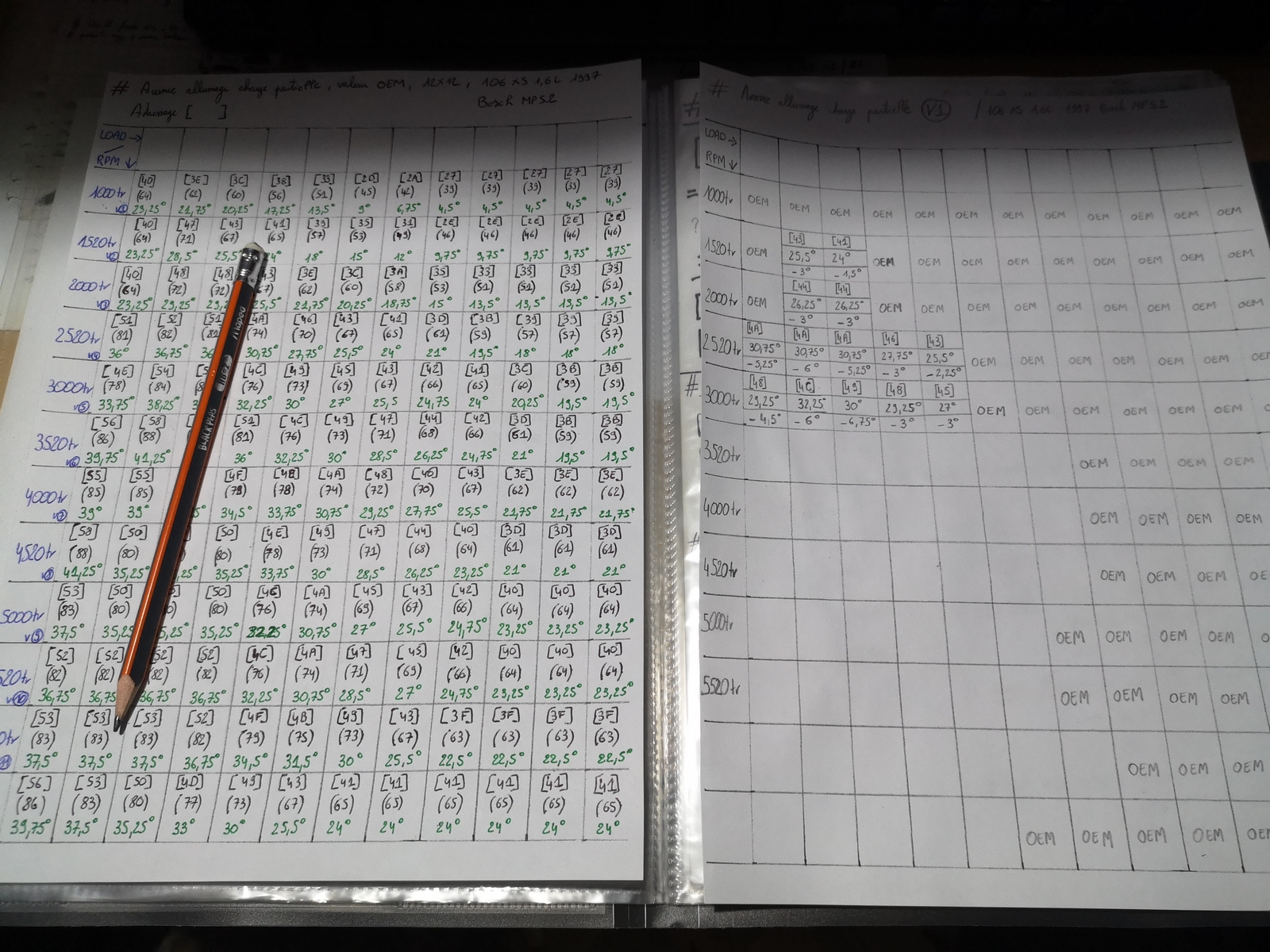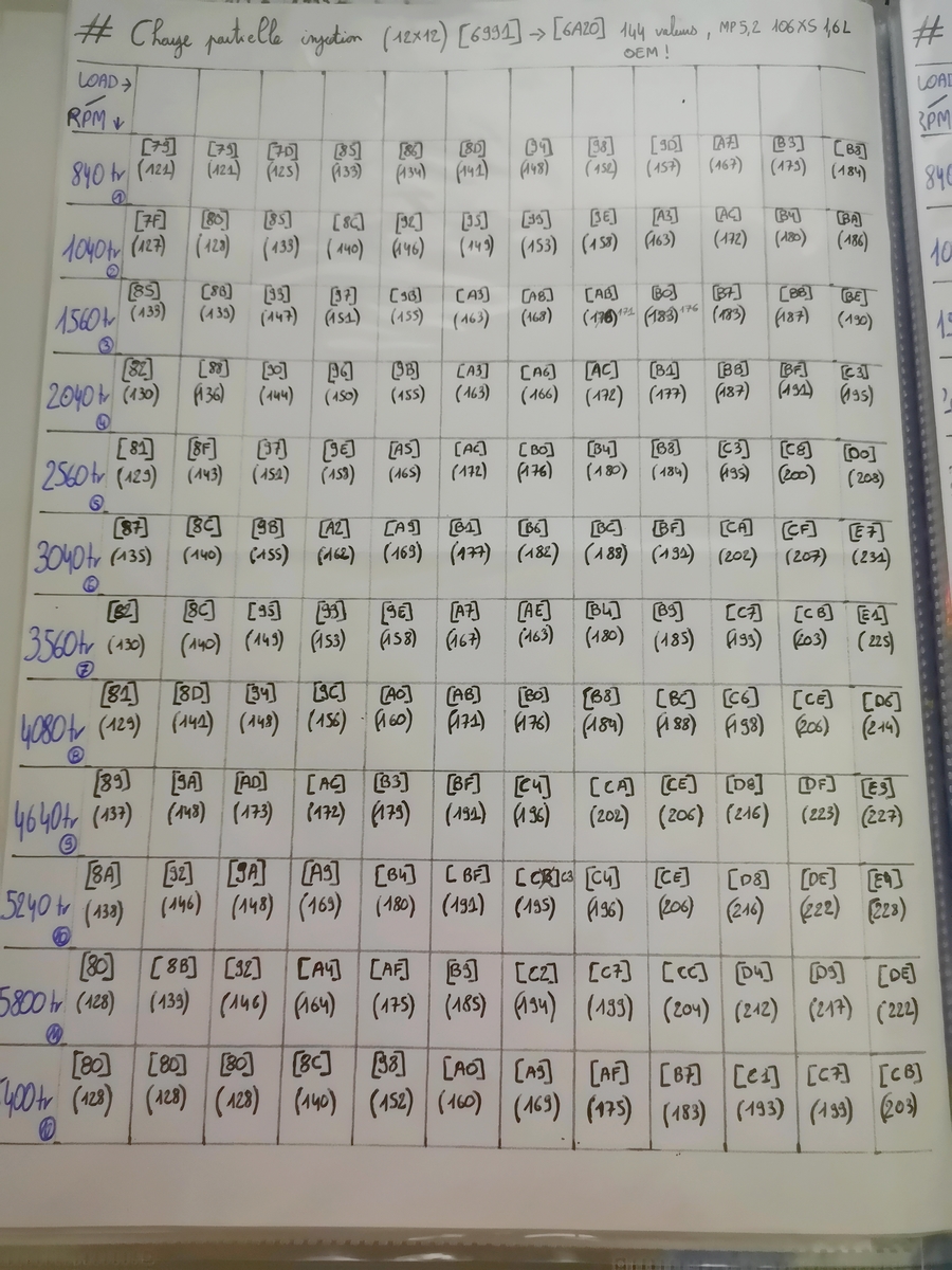 Du coup pour essayer, j'ai remis mes valeurs OEM en 12x12 de partielle injection.