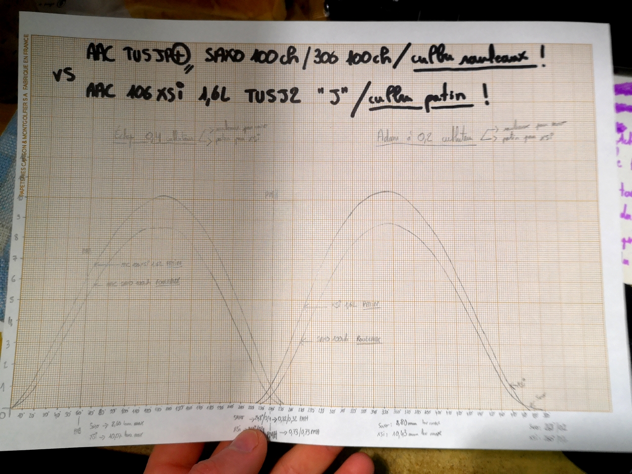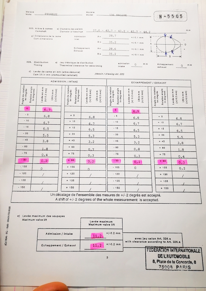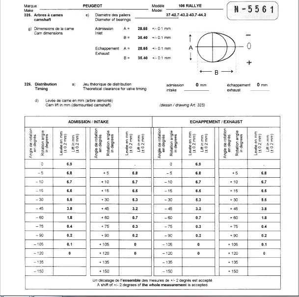 (Attention à l'usure des cames, qui parfois fausse ce qui est obtenu).