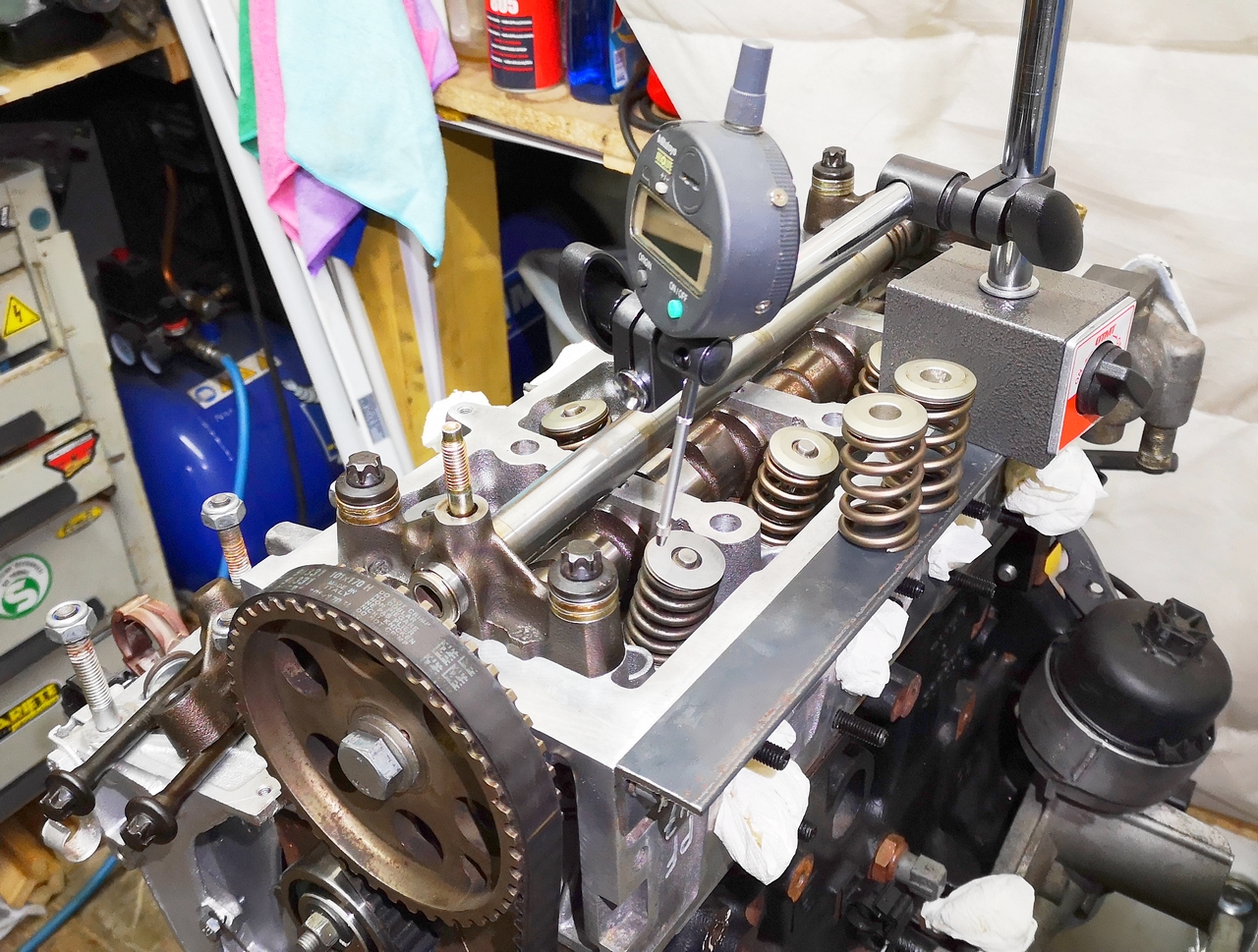 Il faudra aussi usiner le bout des culbuteurs de mesure, pour pas que les rallonges de comparateur touchent.