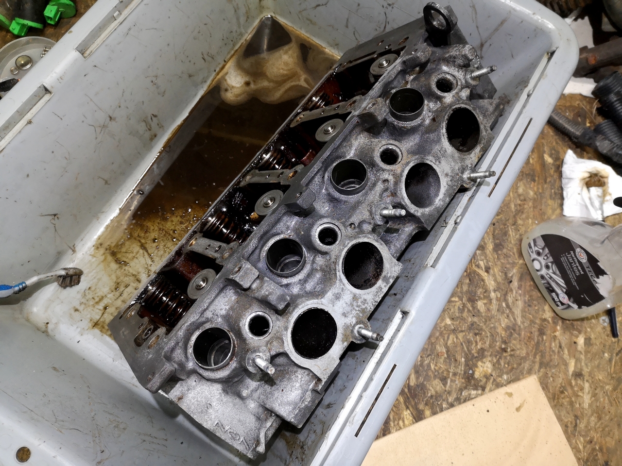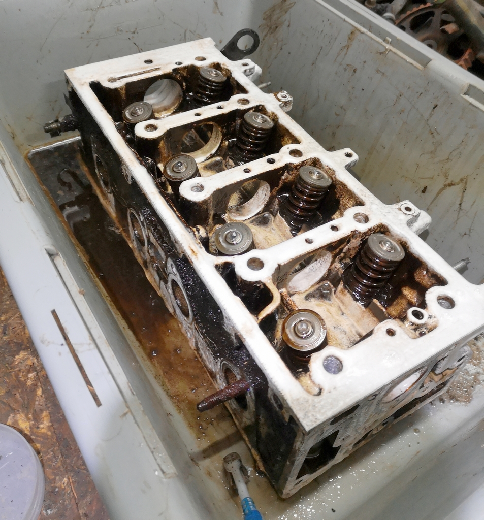 Culasse très dég, oxydé et imprégné de graisses/ huiles/ calamines et autres.