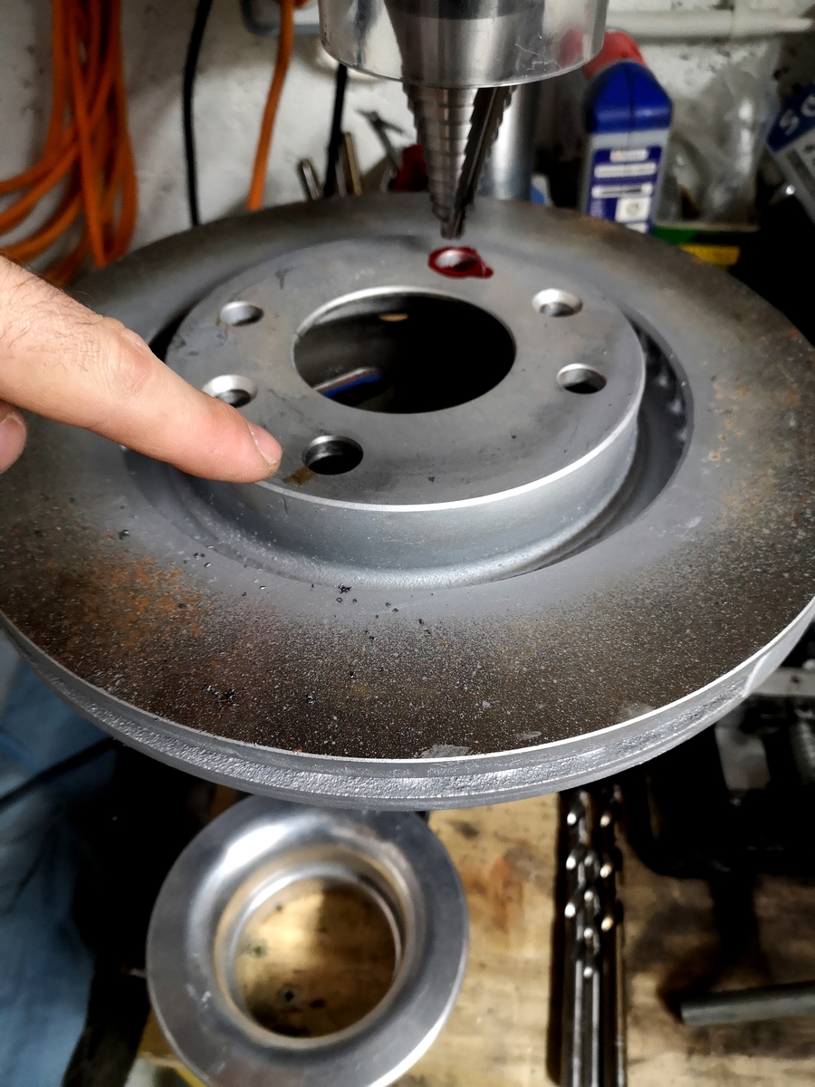 Je me suis pas prit la tête, j'ai percé le disque de 12.8 à 14mm, là ça passe sans problème, le disque se plaque bien sur le moyeu, photo: