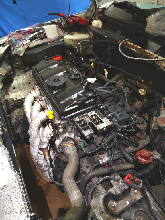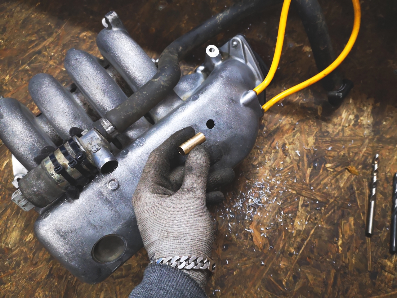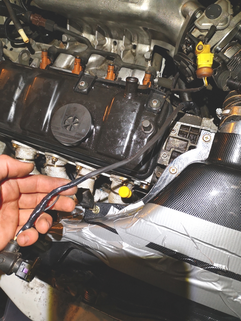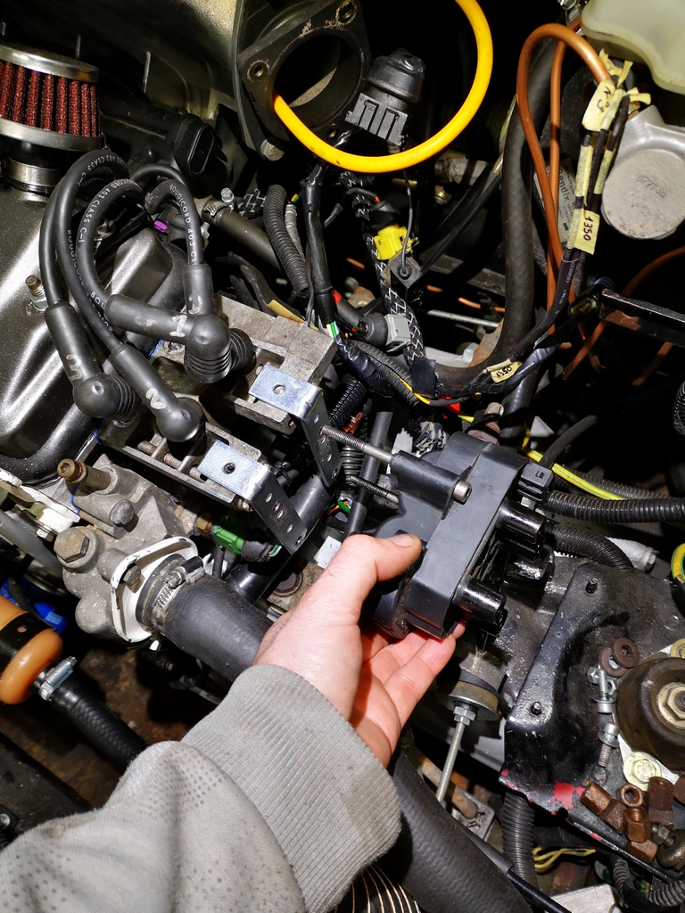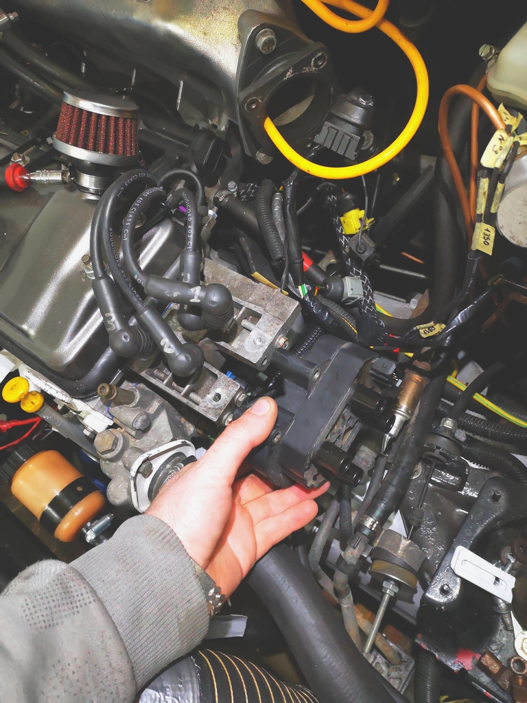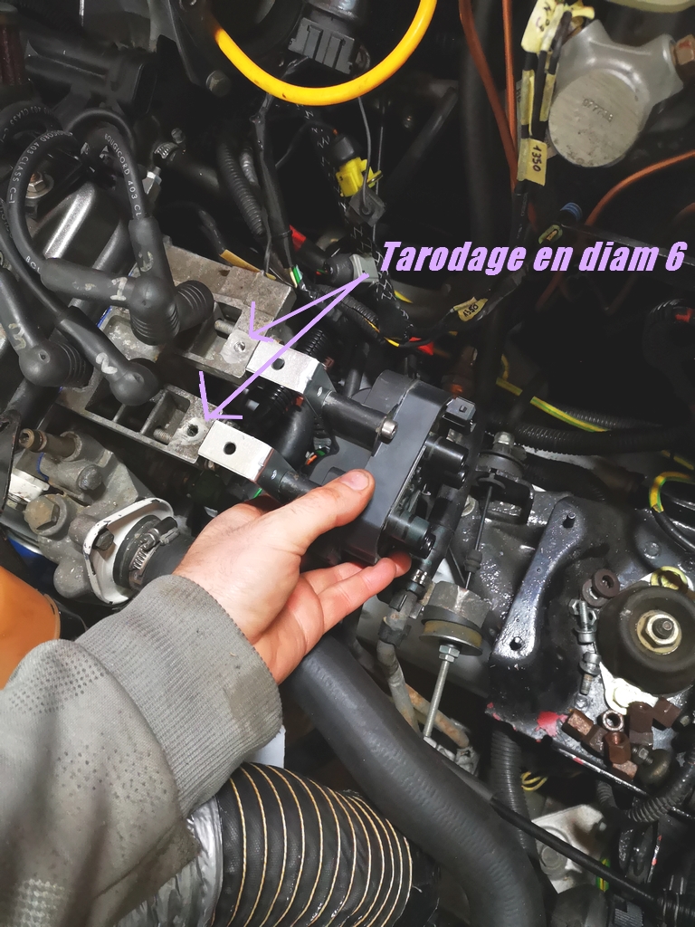 fixer 2 cm en hauteur par rapport a la rampe d'essence,sinon sa touche,monter sur une patte métallique,avec fixation décalé de celle de la rampe d'injection, sa donne sa :