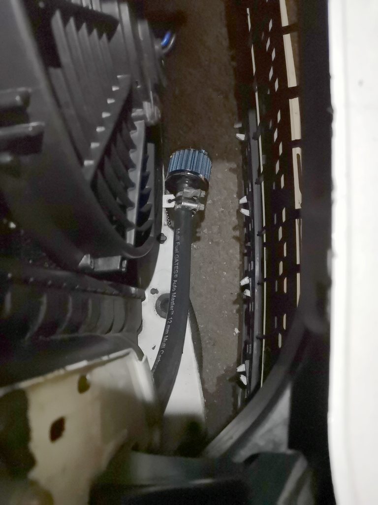 J'ai rallongé la durite du filtre déporté du bocal hybride de récup des vapeurs d'huile,