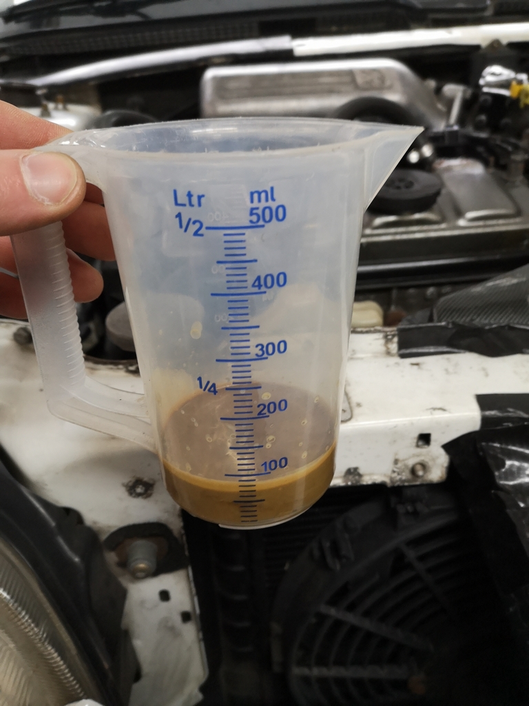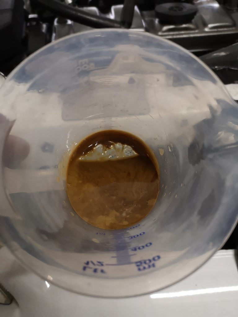 J'ai vider le bocal de récup des huiles/vapeurs d'huile, c'est pas jolie et pleins de flotte,