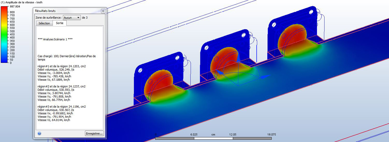 voilà la capture du logiciel soufflerie informatique pour la forme des venturis des cales