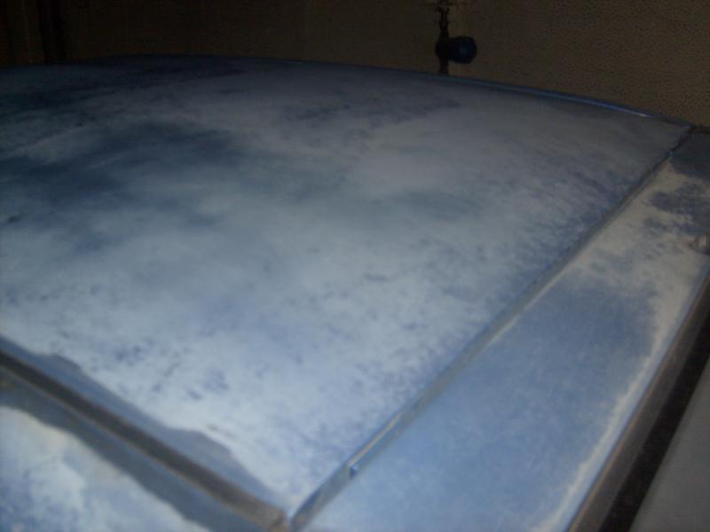 voici quelque photos de la voiture maintenant (vous pourrez constater que la peinture a pris très cher) et aussi j'ai nettoyer sous la batterie il y avait de la rouille donc j'ai poncer mi de l'antirouille et peint.