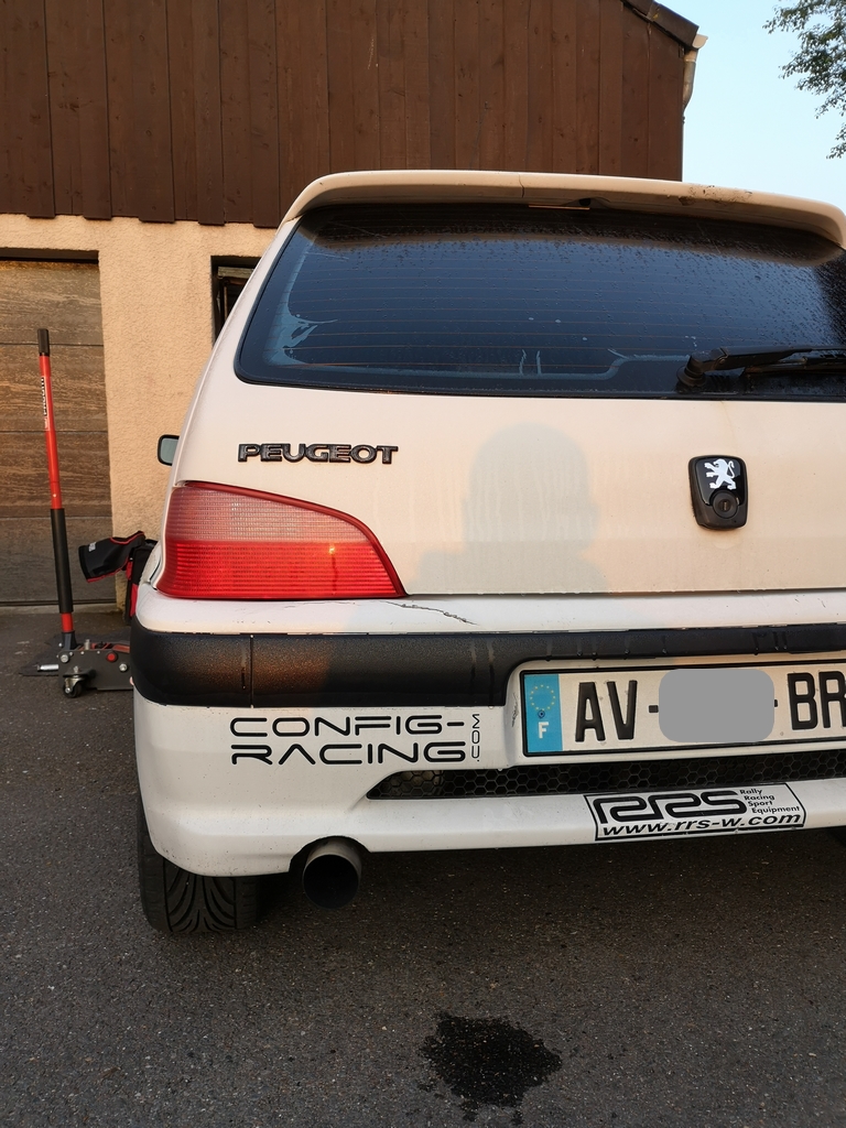d'origine 106 1.1L, modifié pour le look avec un sortie 70mm (interne stock)