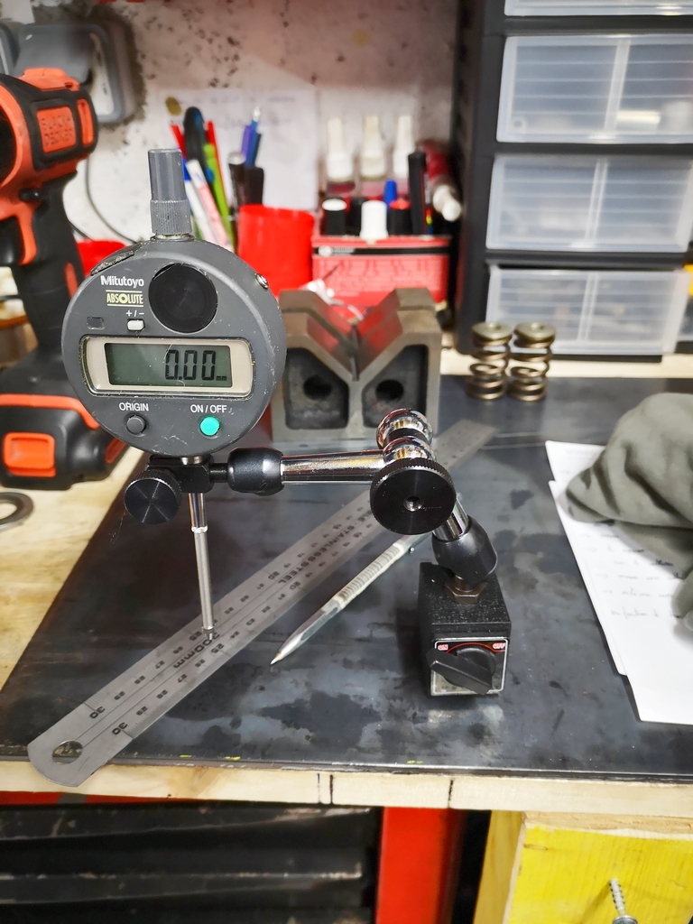 Il faudra aussi usiner le bout des culbuteurs de mesure, pour pas que les rallonges de comparateur touchent.