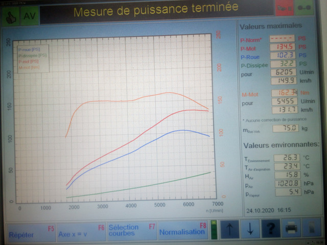134.5ch à 6200trs c'est bien, sa correspond a la valeur de PMAX/régime avec cette AAC,