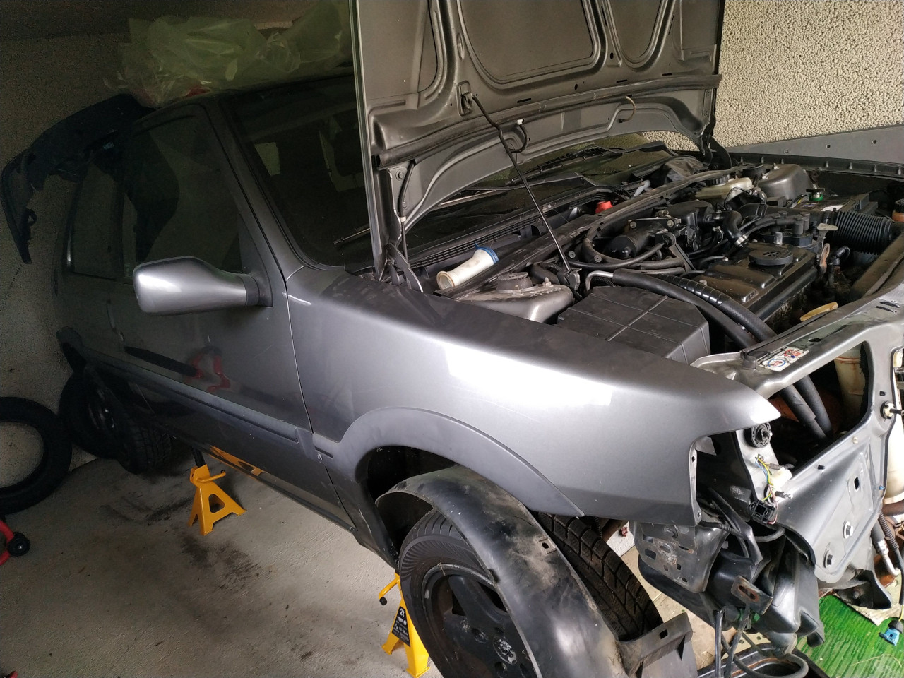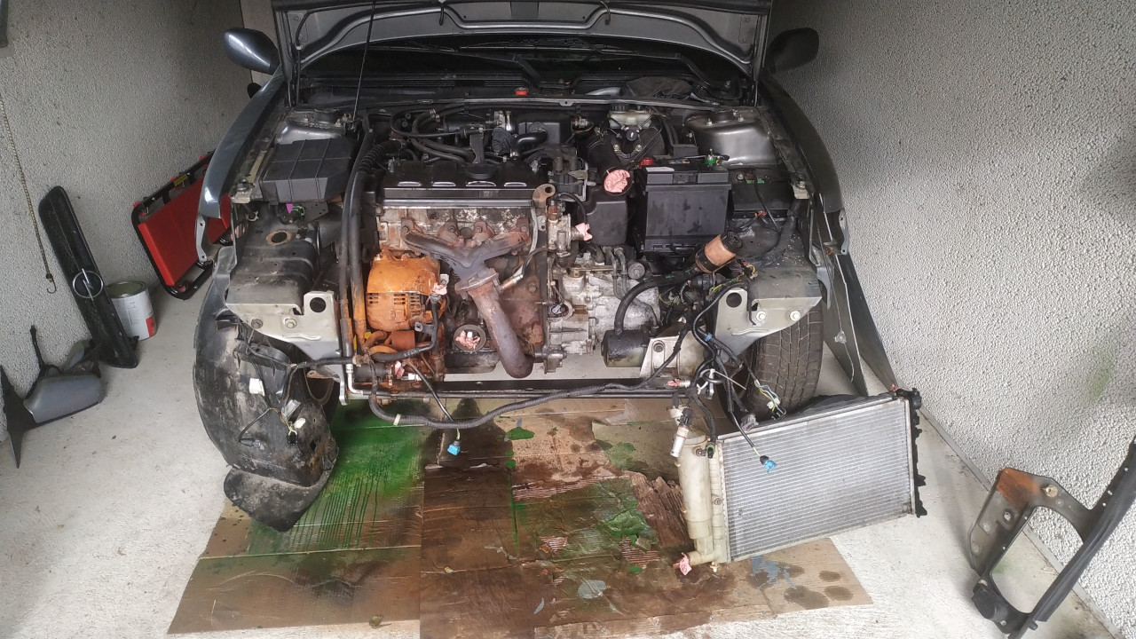 Si je parviens à réparer cette saucisse, elle aura le droit à une bonne rénovation, j'ai déjà constaté un certain nombre de soucis: pas mal de rouille, la direction assistée qui déconne, les bagues d’étanchéité entre la boîte à vitesse et les transmissions qui fuient, petite bosse sur le capot, etc... On a de quoi faire !