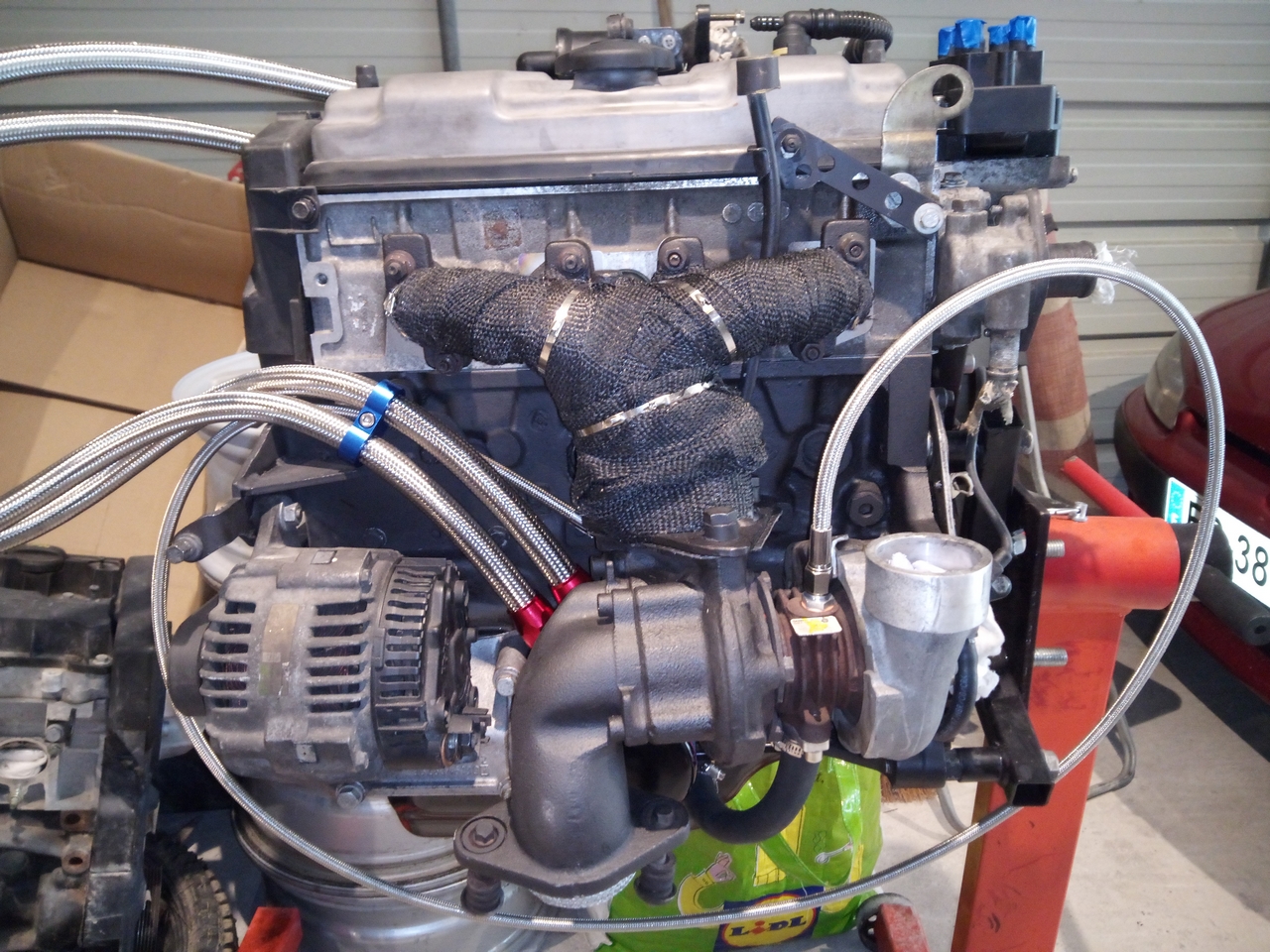 Voilà pourquoi il a du refaire un collecteur sur mesure pour le turbo (turbo plus haut) :