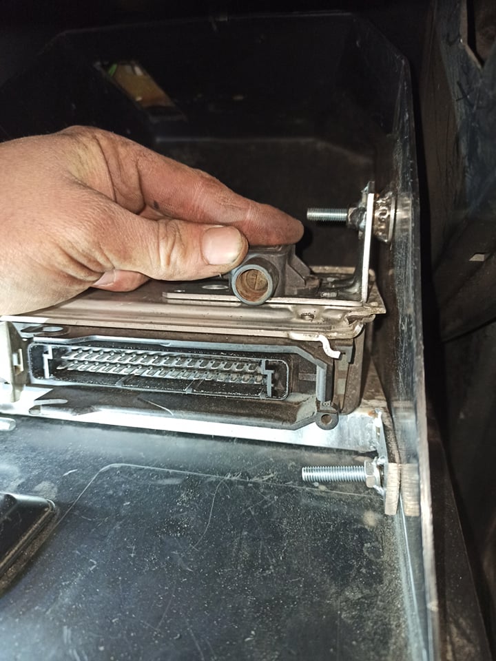 Dernière adaptation coté électrique intérieur j'ai commencé à installer le calculateur dans la boite à gans comme les gti (dans un souci de cacher au maximum de chose pour la baie moteur)