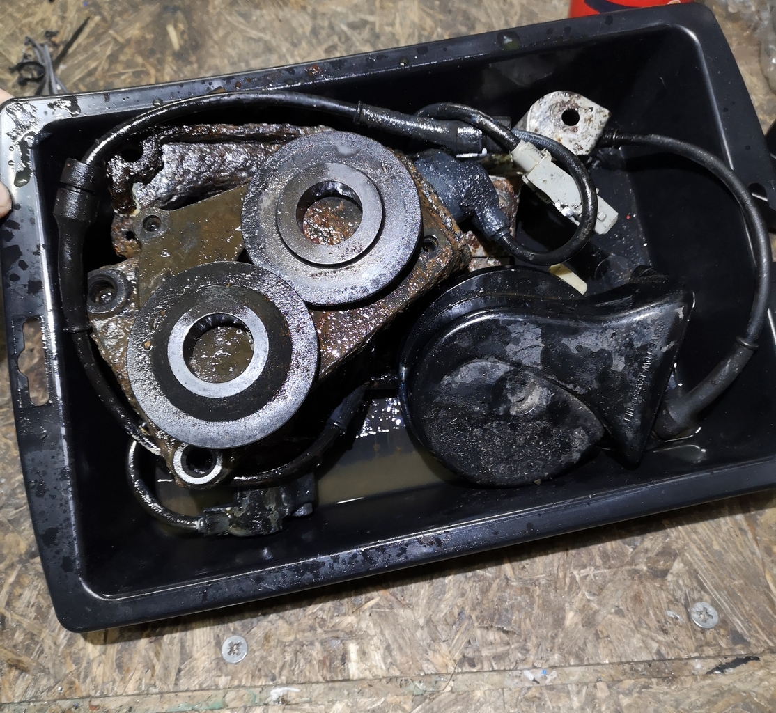 Concernant les supports étriers, entretoises, disques arrières, étrier, tout est au nettoyage, et ce qui est archi rouiller va passer en bain de Evaporost,
