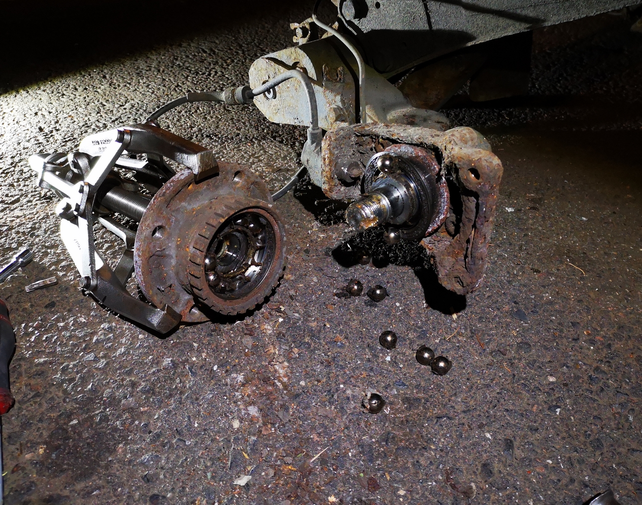 je le sépare des ses disques rouillé mais récent pourtant,des ses moyeux (roulement mort vous verrez),