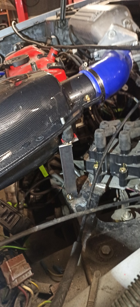 J'ai fais en sorte de la mettre le plus loin possible vers la traverse avant au dessus du radiateur. J'ai du tout couper pour que ça passe et que ça prenne de l'air frais ( capot, support ventilateur, traverse supérieur..) Maintenant c'est correct. Et j'ai pu fixé l'admi sur silentbloc pour pas qu'elle ce balade trop.