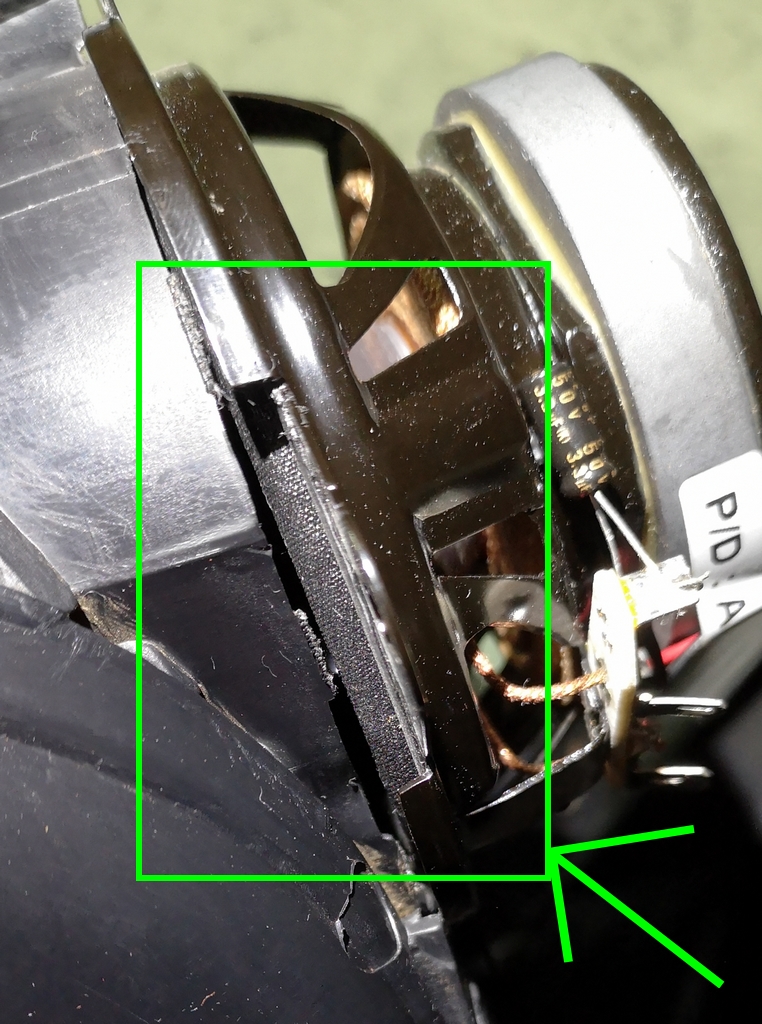 touche le support, ils ont mis une grille plastique devant, et la membrane est plus au centre,