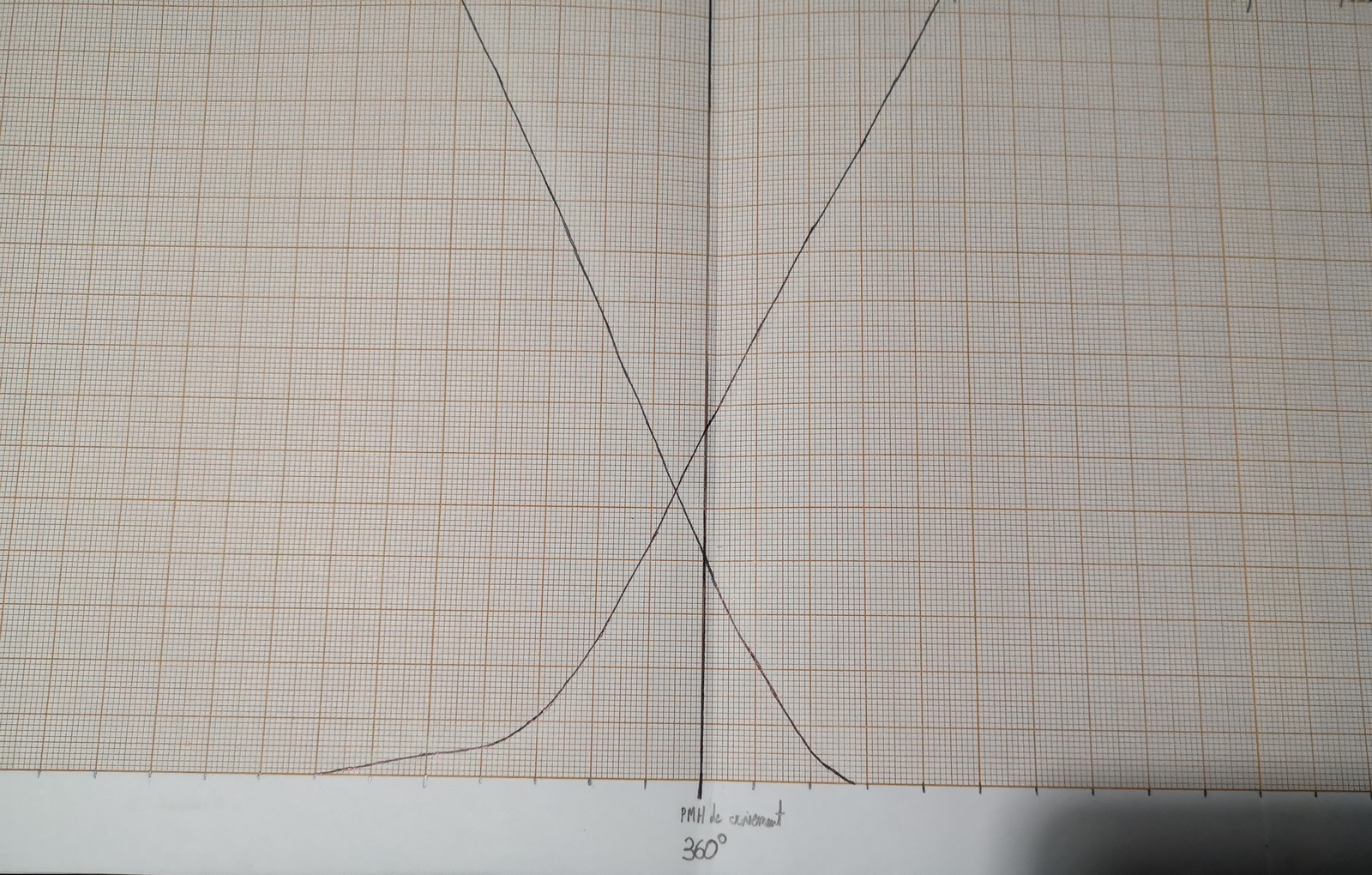Le piston ayant une latence de 4° au PMH de croisement, en se prenant à l'entre deux de cette latence, ont arrive à